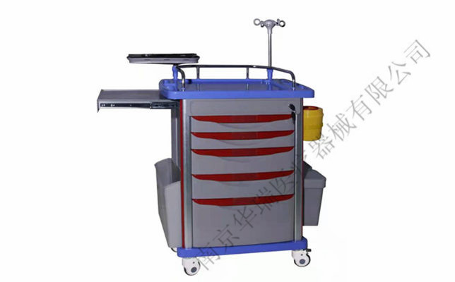 4.车体右侧:伸缩式尼龙输液架可与除颤平台左右互换、ABS 双污物桶;