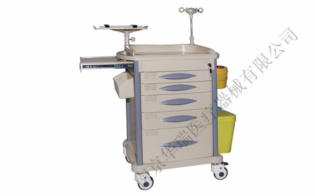 5.右侧::配有隐藏式伸缩输液架、网篮内一只两升锐器盒、ABS双污物桶;
