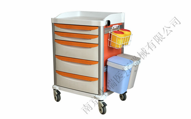 车体框架采用航空级铝材,其余部件采用了工程塑料,在满足车身整体强度的同时减轻了产品的重量,整车推行灵活,轻便,内部容纳量大,外部挂载能力强,可满足各种需求,提高工作效率。本车生产工艺全部使用模具化,采用挤压、注塑、吹塑生产工艺。具有高精度、高生产率、高一致性的特点。台面采用立体护栏无镂空,防止小物品在推行中的滑落,车体左侧台面下配有一块抽拉副工作台,可增加扩展空间,抽屉面板中空吹塑更具立体感,小抽内部尺寸:510*380*70mm 中抽屉内部尺寸:510*380*150mm,大抽内部尺寸:510*380*220mm也可按客户需求任意组合。内部有自由分隔abs插片,可按要求自由分隔。抽屉导轨采用三节静音阻尼自吸滑轨,抽屉会在关闭到最后一段距离时会用液压减慢速度,减低冲击力,形成关闭时的舒适效果。即使用力来推进抽屉也会轻柔关闭、保证运动的完美、柔静。配置:左右侧配备一根外挂横梁可以自行悬挂配件,左侧一个锐器网篮,右侧一个分类垃圾桶,两小抽,一中抽一大抽(选配:电子密码锁、一次性锁、机械锁)。底部:豪华万向静音轮,脚轮材料为高强度聚氨酯。防静电、防毛发缠绕、移动轻便灵活;工作台面尺寸:650*492*1040MM,本车与其它车******区别是抽屉面板中空吹塑更具立体感,阻尼滑轨更轻柔,左右侧有外挂横梁可自行调节高度扩展性更强,抽屉拉手颜色按科室随意换适应性更强更美观,侧板采用一体塑铝板表面平整光滑易清洁,解决传统拼接板接口处难打理的烦恼,可按医院需求配电子密码锁,解决传统护士交接班易丢失钥匙的尴尬。