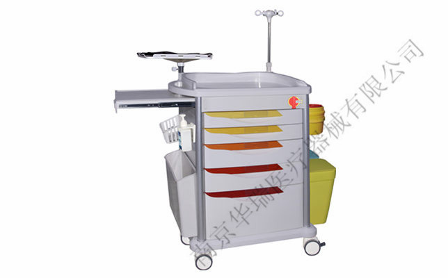 5.右侧:网篮内有两只两升锐器盒、配有隐藏式伸缩输液架、ABS双污物桶;
