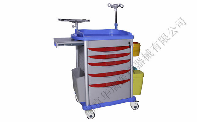 5.右侧:配有隐藏式伸缩输液架、网篮内一只两升锐器盒,ABS双污物桶分色;