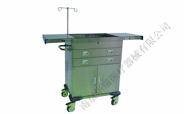 备注:顶对拉门,带塑料药盘、抢救板、盐水瓶架,2大抽屉,下对开门,台面尺寸:660×420